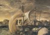 E’ così che, nel tempo, grandi case coloniali bianchissime (“Morning”, 1955 e “Secondo piano al Sole”, 1960), di un gusto ormai sorpassato per la moda dell’epoca, rimarranno a campeggiare imponenti nelle sue tele, ponti modernissimi saranno la scenografia di carretti vecchia maniera, pompe di benzina si erigeranno quali cattedrali nel deserto nelle vastità d’America e i pescherecci moderni sonnecchieranno lungo le rive di acque immortali.