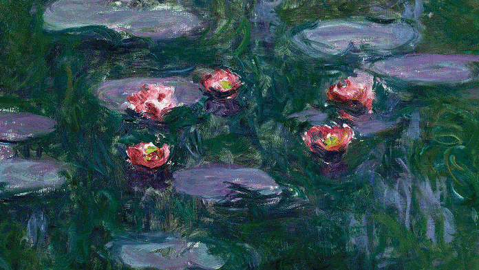 Per gli amanti delle tele più “floreali” del pittore che battezzò il movimento impressionista, la mostra ospitata dal 19 ottobre all’11 febbraio al Vittoriano di Roma, non può che rivelarsi un vero paradiso per gli occhi. Il tema dell’esposizione infatti, che offre alla visione del pubblico capitolino alcune fra le più belle opere di Monet, è quello della natura, i fiori, le ninfee su tutti e il giardino privato che l’artista francese ritrasse ossessivamente negli ultimi anni della sua attività. I capolavori provenienti dal museo Marmottan sono perle rare, alcune mai esposte in Italia, come le tre enormi tele rettangolari di gladioli e ninfee nella sala centrale che da sole meritano una tappa a Roma, così come l’ultima, una tela perduta in un incendio e interamente ricostruita con tecniche all’avanguardia.