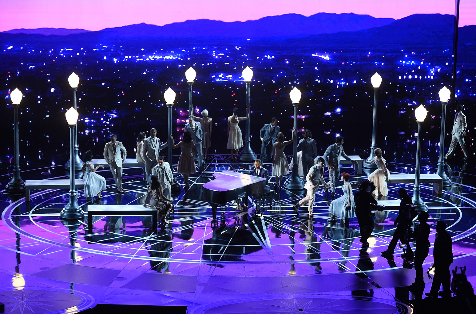 Onirica e scenografica, giunge la performance di John Legend: seduto al pianoforte e circondato da coppie di ballerini che ripetono le coreografie del film La la land, esegue “Audition. (The Fools Who Dream)” e “City of stars”, entrambe candidate alla Miglior Canzone.