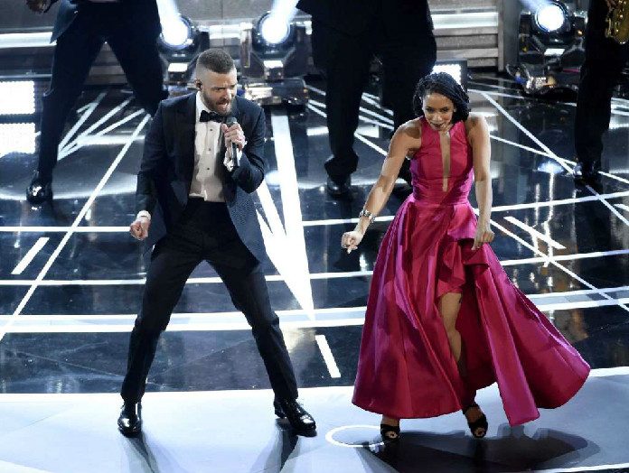 Si aprono le danze: Justin Timberlake canta “Can’t stop the feeling”, motivo principale del film di animazione Trolls di Walt Dohrn e Mike Mitchell (2016), candidato per la categoria Miglior Canzone. Sul palco squarci di rosso e fucsia spezzano la monocromia in nero delle divise maschili. Coreografia semplice, ma energica e di effetto. Bravissimi i ballerini: elegantoni celebranti il lusso delle upper classes.