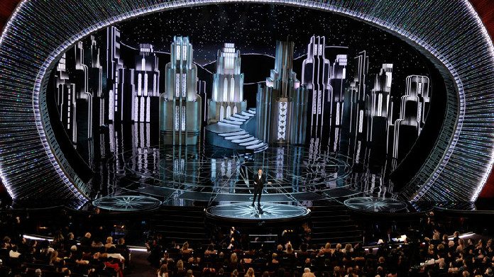 Soddisfatta la moda e i convenevoli, il palco del Dolby Theatre di Los Angeles si accende per ospitare l’89esima edizione degli Oscar. L’arcoscenico sfavillante e una scena di città: le sagome di grattacieli sullo sfondo, creano un’atmosfera newyorkese, più che californiana.