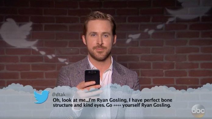 Il messaggio di Kimmel non rimane isolato e se ne scopre lo scopo: oltre la provocazione, c’è l’introduzione di una clip in cui alcune celebrità leggono gli insulti che spesso ricevono su Twitter. Niente di nuovo per noi italiani: i Mean Tweets (“mean” sta per “acidi, cattivi”) sono stati spesso utilizzati anche da Maurizio Crozza nelle ultime puntate del suo Crozza nel Paese delle Meraviglie.
