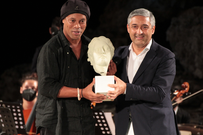 Per questo il fuori classe latinoamericano ha ricevuto sul prestigioso palco di Taormina il Champion of Charity Award, per il suo impegno nel sociale. Un premio che suggella il legame con la Sicilia, dove Ronaldinho ha deciso di produrre il Nero d’Avola delle cantine Birgi di Marsala (Trapani), entrando a far parte del progetto Wine of the Champions. Un’idea di Fabio Cordella, titolare in Salento dell’omonima cantina vinicola e direttore sportivo di numerose squadre di calcio, come i belgi del Royale Union Saint-Gilloise, gli ugheresi dell’Honvéd, l’Africa Sport d’Abidjan (Costa d’Avorio), Treviso e Lanciano.