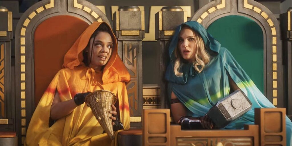 E mentre Thor si appresta ad affrontare questa nuova minaccia, ecco la sottotrama romantica, con il ritorno del suo primo amore terrestre (che ovviamente non si scorda mai), la potentissima e biondissima Jane Foster (Natalie Portman), la quale, per una serie di sfortunati (ma sempre “divertentissimi”) eventi è venuta in possesso del redivivo Mjolnir: riuscirà Thor a sconfiggere Gorr e a riconquistare il cuore della tra l’altro anche emancipatissima Jane?