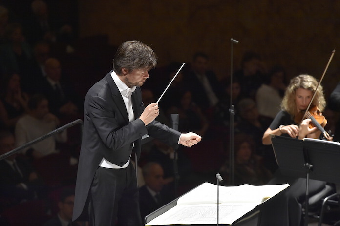 Così, dalla trama densa e complessa emergono fantasmi di armonia, sfocature acquose e insieme ruvide, che si sfanno in fini trasparenze per poi tornare allo stato solido di cristallizzazione: come dice lo stesso Ligeti, “ciò che è nella pagina è polifonia, ciò che si sente è armonia”. Il gesto di Valčuha asseconda, richiede, ricerca l’ordine nel caos che è gioco infinito di specchi, di prismi, di riflessi, risonanze, rifrazioni: la luce, la ricerca della luce, che si fa desiderio, fame e brama, si ridesta nell’oro e nel bronzo, i colori dell’antico Omero, si frammenta e si frantuma in aspre gocce d’echi infiniti e, in parte, sovrapposti, si placa, temporaneamente, nell’azzurro e nel nero dell’acqua e della terra: elementi primordiali che l’Orchestra, sotto l’attenzione dell’onnipresente direttore, così fragile e insieme forte, alto sul suo podio, perfettamente rende nella loro essenziale sostanza, senza sbavature, reali e sbalzati come il liquido e il metallo di cui son costituiti.