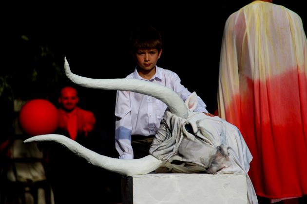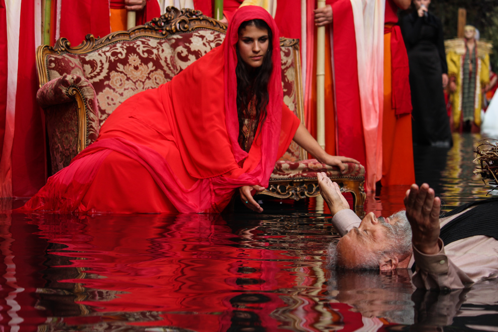 La Compagnia della Fortezza di Volterra festeggia i suoi 30 anni con il nuovo spettacolo Beatitudo, frutto di due anni di lavoro su testi di Jorge Luis Borges, creato dalla mente geniale e visionaria di Armando Punzo. Una genialità che si sposa con un pizzico di follia e con l’immensa vasca ricolma d’acqua che occupa l’intera scena, ossia il campo da calcetto dei detenuti del Carcere di Volterra. Le barriere sono abbattute, ed in un flusso onirico inizia il viaggio labirintico tra le parole di Borges ed i suoi personaggi lievi e poetici, che danzano riflessi sullo specchio incrinato dell’acqua. Le note cariche di pathos dell’eclettico polistrumentista e compositore Andrea Salvadori rendono i tableaux vivants ancor più ammalianti e introspettivi, e guidano lo spettatore verso dimensioni altre e corroboranti.