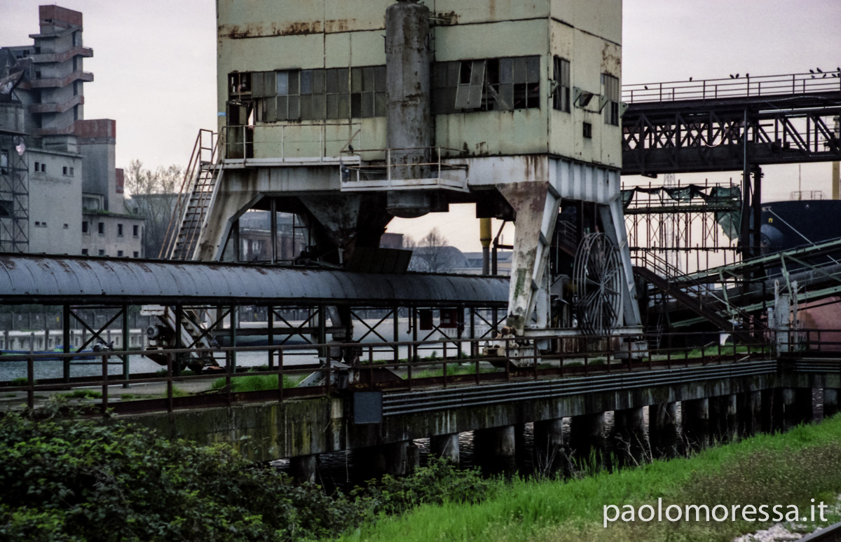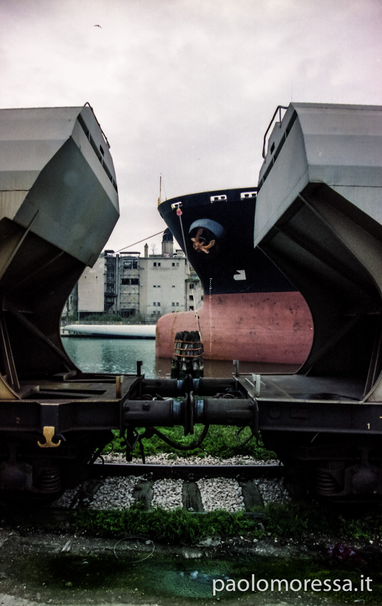 I “paesaggi” impressi in pellicola ci rimandano la grandezza del porto industriale: le alte pareti di container, i riflettenti silos, i vacui binari ferroviari, le mastodontiche navi mercantili, la sinuosità dei tubi e i “raffinati” sbuffi delle torreggianti ciminiere. Una “Metropolis” industriale figlia dei “tempi moderni”, riflessa in una striscia di mare, del quale non riusciamo a sentire l’odore di salmastro.