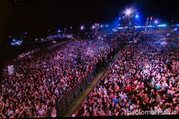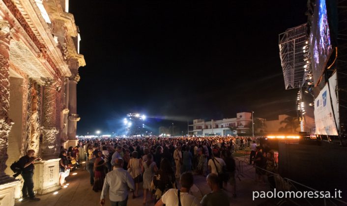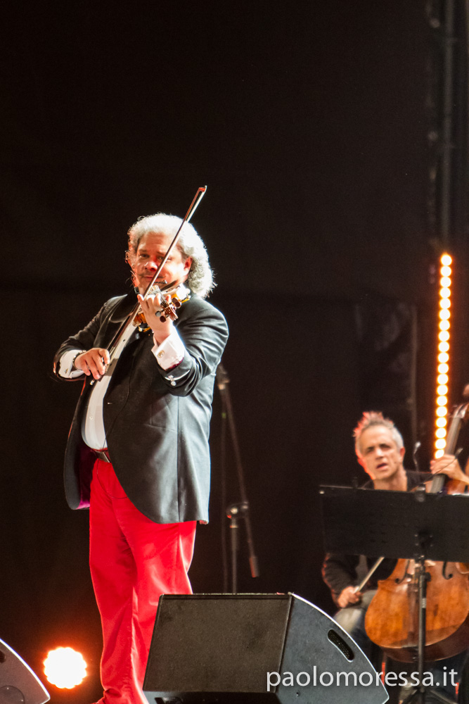 Molto divertente e allegro il momento di Roby Lakatos, violinista Gipsy ungherese che ha contaminato “San Marzano” con la sua personalità colorata. Segue Emma che sentitamente canta un pezzo simbolo della musica salentina “Lu rusciu de lu mare”, Alfio Antico che con la sua tammorra inonda di un ritmo mediterraneo tutta la piazza, Roby Lakatos con uno scatenato Sollima nella “Pizzica Indiavolata” divertono pubblico e orchestra. Il concertone finisce con “Kali Nifta”, canzone in griko su un ritmo che ricorda il sirtaki greco, che cantata da tutti gli artisti augura dolce notte.