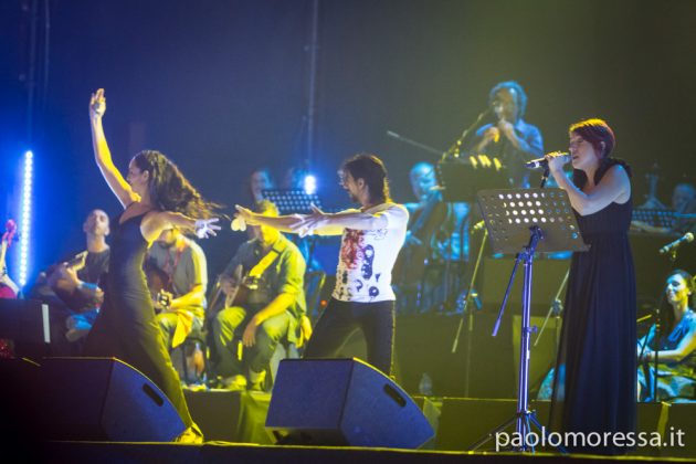 Il concerto scivola con le voci di Enza Pagliara, Antonio Amato, Stefania Morciano, Alessandra Caiulo, Alessia Tondo, Ninfa Giannuzzi, Anna Cinzia Villani arrivando alla bellissima esibizione del ballerino Miguel Àngel Bernas sulle note della “Tarantella del Gargano” cantata dalla sublime Maria Mazzotta. E’ la volta di Max Gazzè che interpreta la “Pizzica di San Vito” e “Fronni D’alia”.