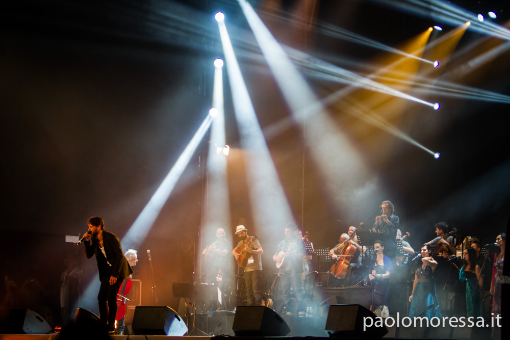 E’ il momento di Eugenio Bennato che apre il suo concerto con un omaggio ai Cantori di Carpino. Il Concertone inizia con un pezzo strumentale “Antidotum Tarantulae” dove Giovanni Sollima, Maestro Concertatore di questa edizione, è stato protagonista preparando il palco per l’apertura di Alessia Tondo accompagnata dall’orchestra; poi Niccolò Fabi che interpreta dolcemente la canzone d’amore ” Quandu te llai la facce” e ironicamente “Tirisina”.