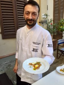 Uno chef molto legato al suo territorio, oggi inserito in un contesto di grande prestigio quale Villa Petriolo, tenuta di 180 ettari con ulivi, vigneti, fattoria e allevamenti che punta a diventare una struttura autosostenibile a 360° e che crea benessere intorno a sé facendo lavorare le aziende locali vicine.