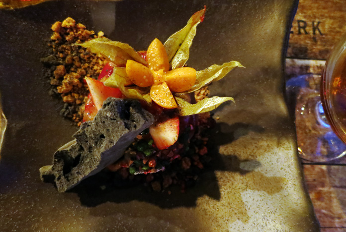 Il ristorante serve piatti dal design minimal della nordic cousine fusi con la cucina europea, in un ambiente elegante, con bicchieri davvero singolari che ricordano pezzi di ghiaccio che si sciolgono e piatti dai colori lavici: tutto in perfetta sintonia con la natura islandese. Qui potrete assaggiare antipasti come chips al formaggio, all’aglio, alla paprika serviti con pane appena sfornato e una salsa di peperoni; pomodorini islandesi in salsa di finocchietto e menta con un sorbetto di gazpacho di pomodoro e nasturzio.