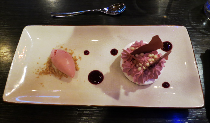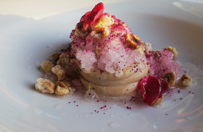 Portate principali sono il merluzzo servito in una spuma di cozze con piselli freschi ed il filetto di manzo con porri e salsa di funghi. Come dolci potrete scegliere tra cioccolato con rose e granella di nocciole, impreziosito da una sorpresa di lampone o gelato di vaniglia con una gelatina di rabarbaro e cerfoglio.