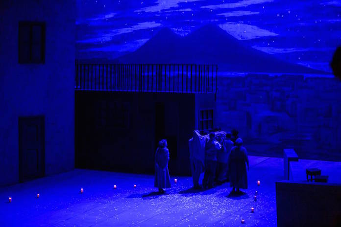 Come diceva Edoardo nei panni di Campese capocomico de L’arte della commedia, vere strade e piazze appartengono al cinematografo, agli spettatori del teatro può, deve bastare la parola del poeta, scene e fondali sono menzogna dichiarata, perché a teatro la suprema verità è stata e sarà sempre la suprema menzogna. A partire di qui, dunque, dalla scelta di non compiere alcun tentativo di (ri)costruzione della realtà, s’aprono per chi il teatro lo fa, da una parte del palcoscenico, e per chi ne fruisce, da quest’altra parte della quarta parete, indicibili e inesplorati spazi d’ineguagliate metafore, di gioco e trastulleria infinita – e d’infinito piacere – sul filo d’una metateatralità che è come un fiume carsico ch’appare e scompare per risorgere più oltre, sempre uguale eppure sempre diverso. In questa pazziella eterna e poetica, unica stella polare non può che essere la musica di Puccini, vero Virgilio di questa risalita verso una desiderata ricomprensione dell’opera, lontano dal gravame e dai laccioli del libretto – il che, evidentemente, non autorizza qualsiasi cervelleria perpetrata da lavoranti senza scrupolo – e che diventa, ritorna ad essere, il vero passe-partout dell’anima. Il resto è, semplicemente, chiacchiera.