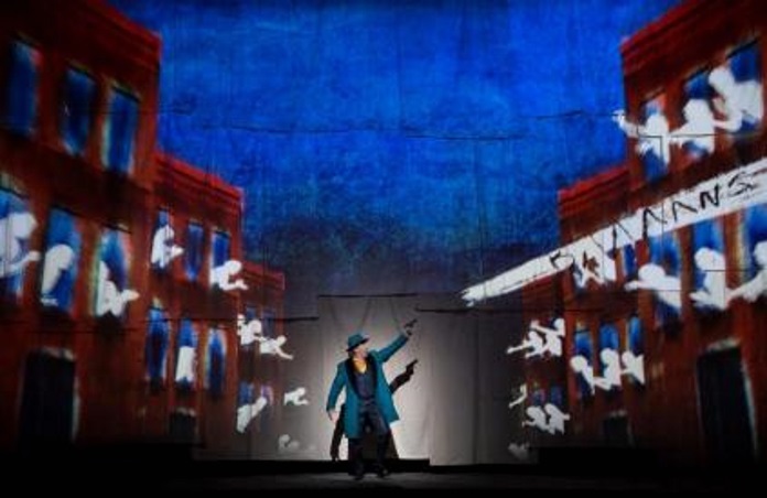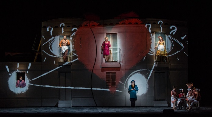 Un brigante e capo militare itrano realmente esistito, ispira libretto di Scribe e il testo “La Caverne ou le Repentir”, donde il melodramma di Daniel Auber, un continuo alternarsi tra brani musicali e recitato. Echi di Rossini e Vivaldi in una musica a partitura veramente interessante e bella. Ed eccoci in una piazzetta antistante le locanda con tavoli e proiezioni di fumetti sulla facciata della stessa. Un po’ cartoon la messa in scena ma funzionale e accattivante nell’intento di mostrare una sequenza di eventi abbastanza rocamboleschi e divertenti al contempo.