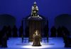 Una regia potente, il cui messaggio arriva con forza, ancor più sottolineato dai bianchi e neri della scena e dei costumi, che fanno di Scarpia e dei suoi seguaci cupi uomini senza volto, sorta di figure vampiresche che si nutrono della vitalità colorata dell’arte, distruggendola, e di umane masse sanguinolente, come quella in bella mostra nello studio di Scarpia.