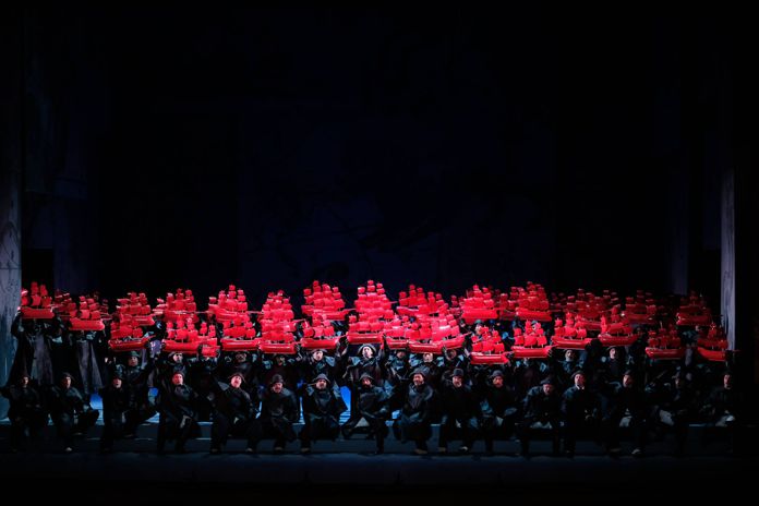 Innanzitutto la direzione. Forse il vero protagonista di questa produzione è stato proprio il maestro Antonio Fogliani, la sua orchestra suona decisamente bene, è nitida. Un suono pieno e rotondo coinvolge l’ascoltatore in una esperienza ricca di sensazioni: tutti gli stati psicologici della scena sono sottolineati con sensibilità, cercando e trovando una grande varietà di colori orchestrali. Buona l’intesa con la scena con un ottimo risultato nell’insieme.