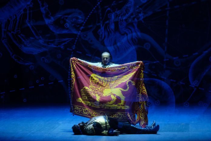 Per la parte visiva dello spettacolo si è assistito alla ripresa della regia di Francesco Micheli, andata in scena alla Fenice nel 2012. Sicuramente uno spettacolo di grande fascino e dai molteplici piani di lettura: proprio questi sono i “talloni d’Achille” che rendono tutto un po’ zoppicante. Lo spettacolo è davvero ricco di idee bellissime, ma queste sono troppe e non tutte sono approfondite allo stesso modo. Francesco Micheli è sicuramente un regista ottimo e tra i più interessanti di oggi: ma questo Otello non posso dire sia il suo lavoro migliore vista anche la maturità mostrata nelle ultime produzioni. Risulta uno spettacolo “barocco” che stupisce lo sguardo del pubblico non annoiandolo mai regalando anche momenti suggestivi, ma tradisce se stesso in più punti utilizzando troppi codici visivi distanti tra loro. Ottime le scene ideate di Edoardo Sanchi e funzionali i costumi di Silvia Aymonino.