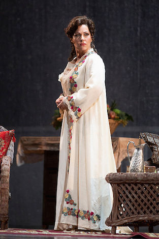 E non mi riferisco tanto – o non solo – all’inedita vocalità del personaggio: certo, quando, come ieri sera, trovi una grande interprete del calibro di Nino Machaidze, tutto diventa più chiaro, riconoscendo incarnate perfettamente nel seducente splendore della voce della cantante georgiana, le famose “tre voci”, che sono tutt’uno con l’azione scenica, inscindibile anima – come diceva Proust – del dramma che s’avvita inesorabile in tragedia.
