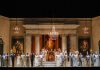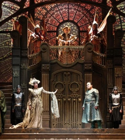 La messa in scena classica, sotto la regia di Maurizio Scaparro (ripresa da Susanna Attendoli), non è particolarmente originale e vede un allestimento seducente ma non innovativo dal punto di vista scenico e recitativo. Originariamente pensato per il Gran Teatro all’aperto di Torre del Lago, si presenta qui in una versione riadattata e ridotta per il teatro al chiuso. L’effetto è claustrofobico e ridondante in uno spazio così lontano dalle caratteristiche originali, forse sarebbe stato auspicabile un allestimento nuovo, più semplice ed arioso, che permettesse alla moltitudine di personaggi che popolano l’opera e al grande coro di dispiegarsi sulla scena in maniera più fluida e meno stipata.
