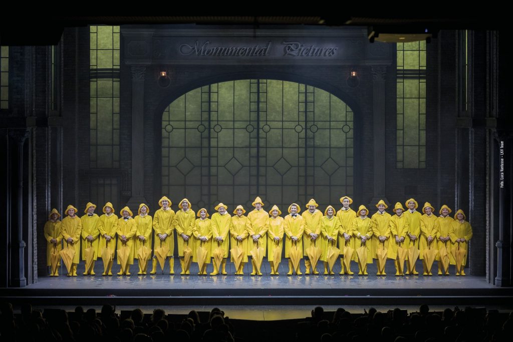 Se la sceneggiatura e le canzoni (tutte tradotte, tranne una) riaffiorano da un periodo particolarmente ispirato di Hollywood, di certo la messinscena di Singin’ in the rain non poteva essere da meno: per fortuna può contare innanzitutto sul supporto di un cast che recita, canta dal vivo e balla in modo impeccabile.