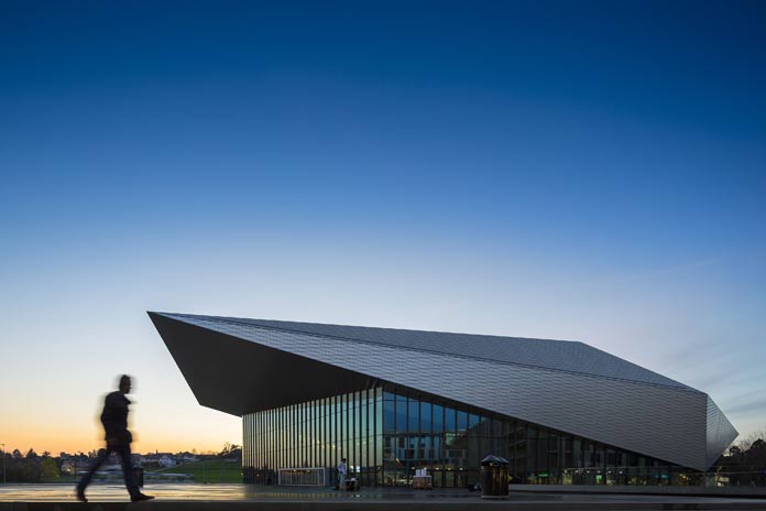 La moderna “cittadella” dell’EPFL, il prestigioso Politecnico Federale ubicato alle porte della città, si è da poco arricchita dell’ArtLab, padiglione disegnato dall’architetto giapponese Kengo Kuma. L’impressionante tetto d’ardesia di 250 metri dell’ArtLab si estende su tre spazi diversi, concepiti per stabilire relazioni sempre più strette tra scienza e cultura. La prima sezione, quella principale, accoglie il Montreux Jazz Café, un caffè high-tech dove, comodamente seduti ai tavoli della cafeteria, è possibile accedere agli archivi del Montreux Jazz Festival – inserito dall’UNESCO nel registro della Memoria del mondo, mediante terminali consentono di effettuare ricerche e scegliere in un variegato database musicale che comprende circa 5.000 concerti di artisti del calibro di Aretha Franklin, David Bowie, Lenny Kravitz, Paloma Faith e Lady Gaga che si sono esibiti sul palco del festival.