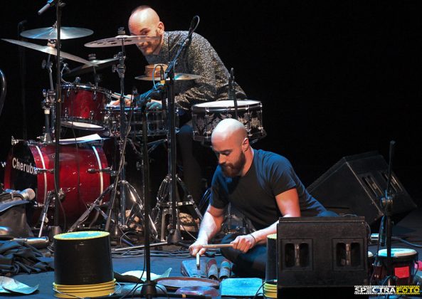 Un emozionatissimo Gegè Telesforo ha presentato il progetto e le finalità di “Soundz for Children”. Praticamente da due anni l’Artista si è recato in una scuola del quartiere di San Basilio di Roma, la Mahatma Gandhi, in una classe di bambini “indomabili” come definiti dallo stesso Artista, con l’obiettivo di dare loro, attraverso un approccio innovativo legato alla musica, la possibilità di esprimersi e di comunicare liberamente, rimuovendo tutti gli ostacoli socio-culturali che ne impediscono un armonioso sviluppo psico-fisico. Un progetto molto ambizioso e faticoso, in tutti in sensi, in termini di impegno quotidiano e di energie ma che ha portato, dopo due anni, a risultati splendidi in quei bambini che non solo si sono sentiti impegnati e responsabili di un progetto importante ma sono migliorati nel loro approccio alla vita e nel rendimento scolastico, dimostrando che, attraverso la musica, si possono imparare tante cose e si può diventare uomini o donne migliori.
