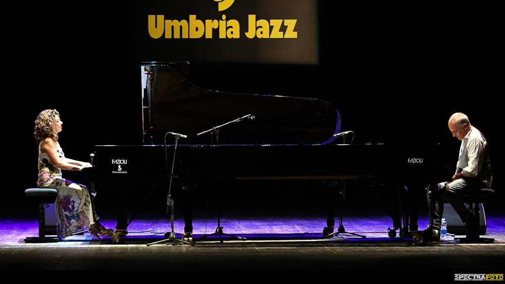Della intensa programmazione del sabato, abbiamo scelto un concerto in particolare da seguire e fotografare: quello di Cristiana Pegoraro & Danilo Rea al Teatro Morlacchi. Due pianisti che seppur provenienti da storie artistiche diverse trovano sul palco una comune visione della musica, con un identico desiderio di superare i confini tra aree solitamente classificate come sono il jazz e la musica classica e portando all’attenzione del pubblico di Perugia un repertorio che ha spaziato da Bach a Chick Corea, dalle melodie napoletane al tango.