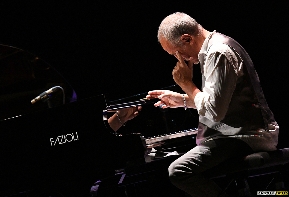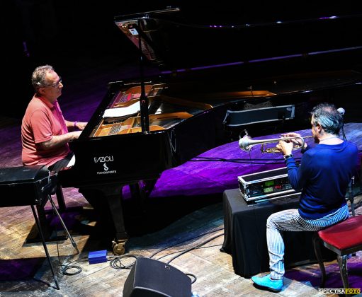 Sabato sera è la volta di un Duo eccezionale: Paolo Fresu & Uri Caine per un progetto di sicuro successo: “Two Minuettos”, terzo album registrato a Milano al Teatro dell’Elfo dedicato alla musica classica e barocca (di grande musicalità l’omaggio a Bach con i due “Minuetto in sol Minore” e “Minuetto in Sol maggiore” alla musica popmusic nazionale ed internazionale e agli standard jazz tra i brani più conosciuti e suonati al mondo (come “Cheek to cheek” e “Night in Tunisia”) oltre ad una splendida “Almeno tu nell’universo” di Mia Martini che ha lasciato il pubblico davvero estasiato.