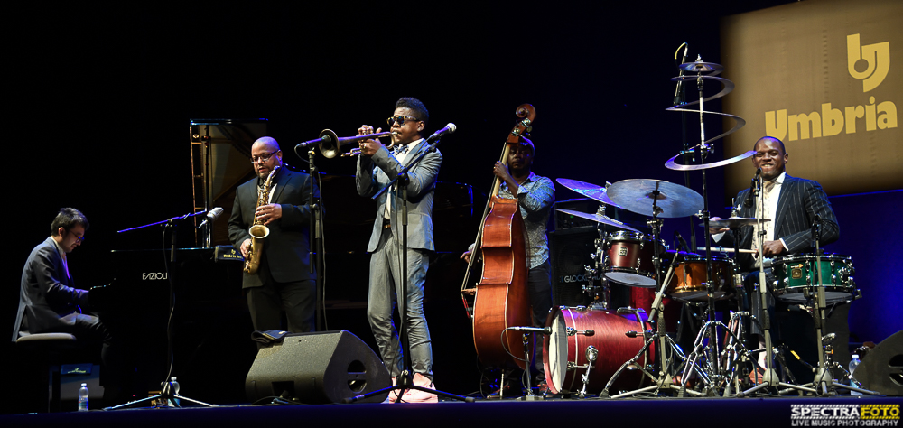 Di tutt’altro genere, l’ultimo concerto della notte che mi affretto a seguire al Teatro Morlacchi all’incirca a mezzanotte di Roy Hargrove Quintet. Nonostante l’ora ormai tarda, il teatro è affollatissimo per applaudire una delle leggende contemporanee del jazz. Trombettista d’eccezione Roy Hardgrove, annoverato tra i “giovani leoni” del nuovo bebop negli anni 80-90 oggi è uno dei musicisti più bravi e più apprezzati del jazz a livello mondiale. È considerato una sorta di erede di Miles Davis e vanta due Grammy Awards vinti. Il suo stile è unico, suona la tromba con tale maestria e con tale vigore che non si può fare a meno, visto il suo fisico snello e i suoi problemi di salute, come possa infondere nella musica che crea tanta energia e tanto vigore. Ascoltarlo è pura magia, e si resta lì praticamente affascinanti dalle note del suo strumento e dalla sua capacità di guidare un quintetto acustico di indiscussa bravura e talento.