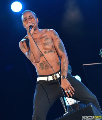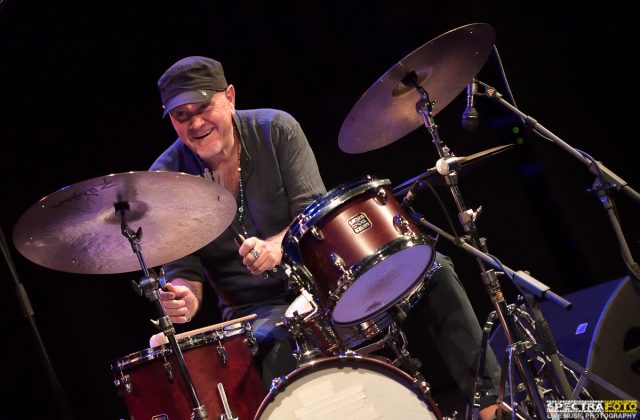 Ad aprire il concerto una band speciale gli Hypnotic Brass Ensemble, otto musicisti americani di Chicago a conduzione familiare visto che sono figli di una leggenda del jazz della Windy City, Phil Cochran, trombetista della Arkestra di Sun Ra e tra i fondazioni della AACM, fondazione che riunì le più grandi intelligenze dell’avanguardia di Chicago. Cresciuti praticamente con la musica, dopo l’esordio nella Phil Cochran Youth Ensemble, hanno fondato la HBE con la quale hanno girato il mondo con la loro musica, un esplosivo mix di jazz, funk, rock, hip hop. Elegantissimi nei loro abiti scuri, man mano che presentavano i loro brani si sono letteralmente scatenati in un tripudio di musica e di energia, soprattutto Tycho Cohran, il quale spogliatosi sul palco, a torso nudo ha suonato e rappato, per la gioia dei numerosi fotografi sottopalco.