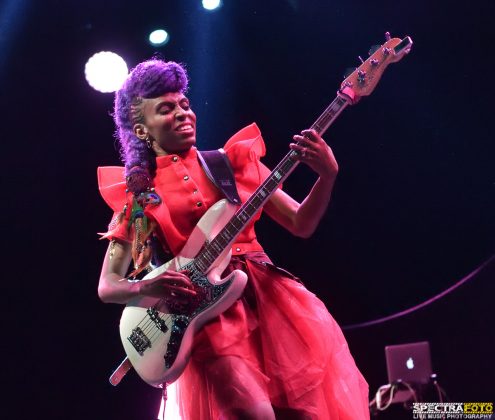 Il tempo del cambio palco e arriva un’altra grande “scoperta” degli organizzatori di Umbria Jazz: Nik West. Anche lei cresciuta con la passione della chitarra ereditata dal padre chitarrista, sin dalla giovanissima età dei 13 anni ha formato le prime band, come chitarrista per poi scoprire il basso elettrico. Da li la sua, seppur cosi giovane, strepitosa carriera, tanto da guadagnarsi l’appellativo di “versione femminile” di Lenny Kravitz e Prince. Decisamente eccentrica nel look, si è presentata con un abito particolare ovviamente di colore purple corto ma con una grande coda vaporosa di tulle e seta e l’acconciatura da “purple unicorn”, con i capelli anch’essi viola. Ma non si fa notare solo con il look, anzi. Il primo brano che apre il concerto, una versione di “Mission Impossible” è una vera e propria chicca per intenditori e si capisce perché il suo modo di suonare il basso sia stata paragonata a Prince, mentre i suoi virtuosismi ci riportano subito alla famosa “slappata” di Marcus Miller. Anche se di jazz forse ha solo questo modo di suonare di Miller, mentre il suo stile attinge molto ad un mix di rock/pop e funk. Conquista il pubblico non solo con alcuni brani del suo ultimo album “Purple Unicorn” ma soprattutto con una inedita versione di “Come together” e un’esibizione da vera rockstar in “Let’s work” che interpreta magistralmente come il grande Prince, con movimenti audaci e sensuali che scatenano il pubblico. Nel bis ancora un altro omaggio al grande Prince con “Purple Rain” che infiamma la platea, soprattutto giovane dell’Arena Santa Giuliana. Insomma un’altra bella scoperta di Umbria Jazz.