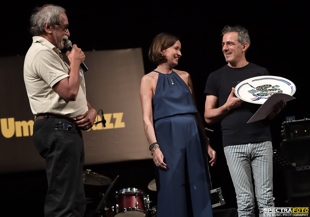 Grande attesa per il primo concerto del pomeriggio al Teatro Morlacchi del Paolo Fresu Devil Quartet, anticipato dalla consegna, meritatissima del Premio Ambasciatori dell’Umbria nel Mondo 2018 ideato dalla Fondazione Cassa di Risparmio di Perugia proprio a Paolo Fresu, per la sua instancabile attività artistica che lo ha portato ad essere riconosciuto a livello internazionale come uno dei migliori trombettisti al mondo oltre che per il suo grande impegno sociale essendo non solo l’ideatore della rassegna “Jazz per l’Aquila” che quest’anno celebra la su quarta edizione e che l’anno scorso si svolse anche in supporto del Comune di Amatrice dove lo stesso Fresu, insieme a Daniele Bonaventura si esibì in un concerto straordinario davanti al luogo dove sorgerà il nuovo Polo Polifunzionale delle Arti, ma anche il Presidente della Federazione Nazionale di Jazz che sta cercando di dare ancora più valore alla professione dei musicisti e alla promozione e sviluppo del jazz in Italia.