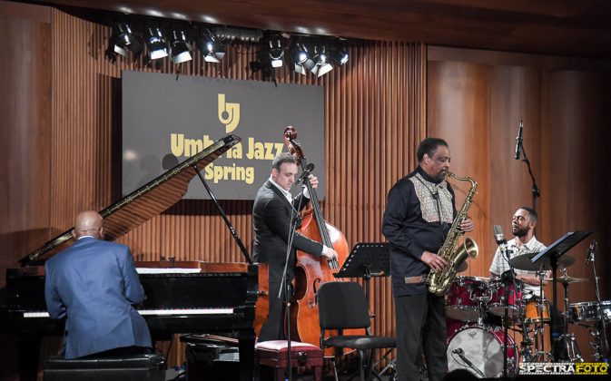 Nel secondo concerto un grande sassofonista americano Chico Freeman, protagonista dell’Umbria Jazz già dagli anni ’80 / ’90, e che a New York e non solo ha suonato con tantissimi musicisti come, tra gli altri, Dizzy Gillespie, McCoy Tyner, Charles Mingus, Art Blakey, Bobby Hutcherson ma anche tanti altri artisti del jazz latino oltre che della musica pop come Earth Wind & Fire, Eurythmics, Sting ha affascinato il pubblico presente con le tipiche sonorità del jazz americano e latino da grande protagonista della musica quale egli è ancora oggi.