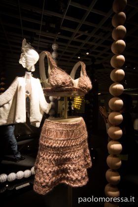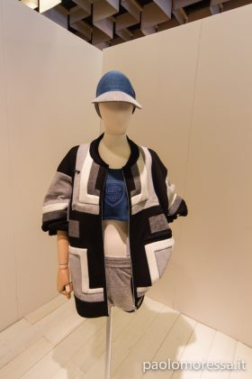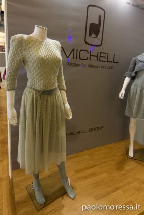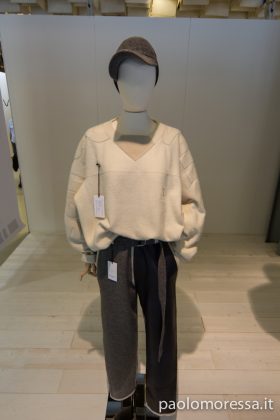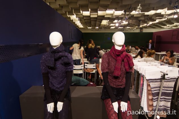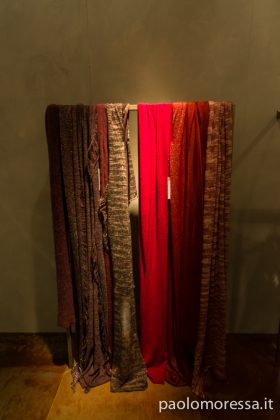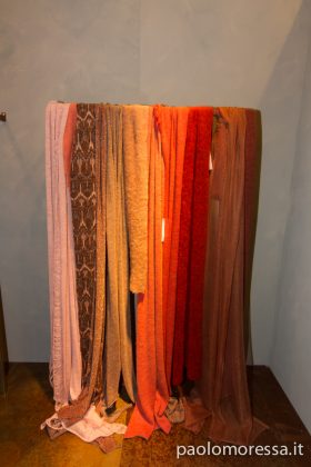 LANIFICIO DELL’OLIVO ha esposto i teli e capi di abbigliamento in ordine cromatico e tematico, con gran gusto.
