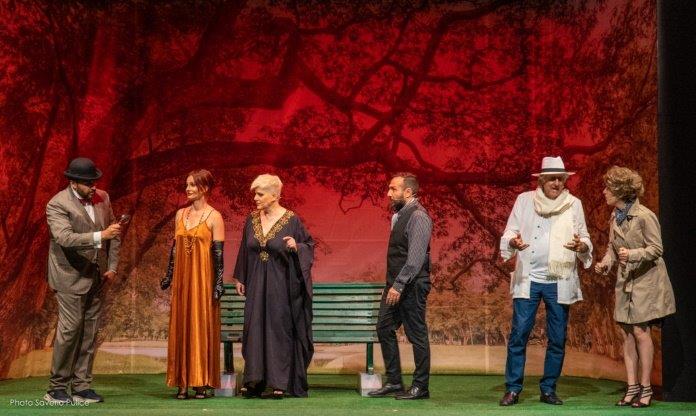 Se la cifra della compagnia è la romanità: chi dei protagonisti vince il premio del maggior cumulo di immondizia sotto casa, se non la medesima Raggi, impersonata grandemente da Morgana Giovannetti. Davvero lei. Brava. Il premio è…. una scopa tutta d’oro. E se la regia è del Maestro Pierfrancesco Pingitore, la sua duttilità fa sì che sul tema si possa con leggerezza chiedere aiuto alle forme più complete di spettacolo, quale il giallo di sicuro successo e allora tutti in scena per un adattamento. Omicidio sulla Panchina Express con tanto di Commissario Poirot e qui nelle sue veci c’è Alessandro Tirocchi, e Signora Jessica Fletcher ancora la Giovannetti. Bravi e divertenti davvero.