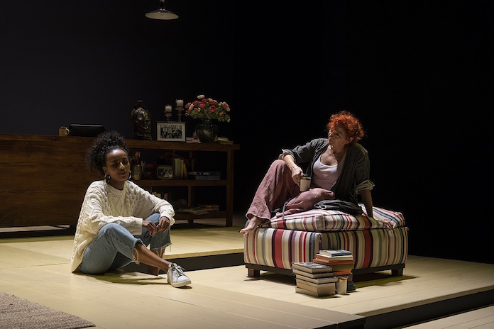 L’accorta regia di Andrea Chiodi asseconda il ritmo dei dialoghi serrati, tradotti a perfezione da Monica Capuani, guida gli attori attraverso i complessi rapporti che l’Autore ha stabilito per loro, raggiungendo così l’invidiabile naturalezza, ricca di sfumature e di contraddizioni come la vita vera, che probabilmente era lo scopo di chi ha scritto la pièce. In questo, certo, è aiutato dalle matite di Ilaria Ariemme, che disegna i costumi, bel ritratto di famiglia contemporanea, e di Matteo Patrucco, che realizza la scena, tutta imperniata sulle sfumature chiare del legno della lunga credenza della casa, distese linee orizzontali che in modo evidente si richiamano al gusto della proprietaria, che fanno da pendant alle piattaforme su cui il mobile si appoggia, anch’esse orizzontali, lunghe e piane.