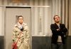 Un buon vino pesante addormenta in un sonno profondo i commensali e un coltello brandito dalle streghe fanno il destino sanguinario di quella notte, la morte degli ospiti e la mani insaguinate di Macbeth e Lady faranno il mood della tragedia. E se il barone è sconvolto, tocca alla nostra signora prendere il comando della situazione: sistemare il tutto perché il misfatto non sveli con certezza gli autori. Cappottoni in pelle e inserti se non colli di pelliccia, canoni visti e rivisti nei colori nero e verde tenebre, molto attenti al vikingo della vicenda, piuttosto che al contesto drammaturgico, portano la firma di Daniele Gelsi, creano un scena di intrecci tra corpi, tessuti dei protagonisti, e il rosso sangue. D’effetto si ma di scarsa fedeltà agli scritti del grande William Shakespeare.