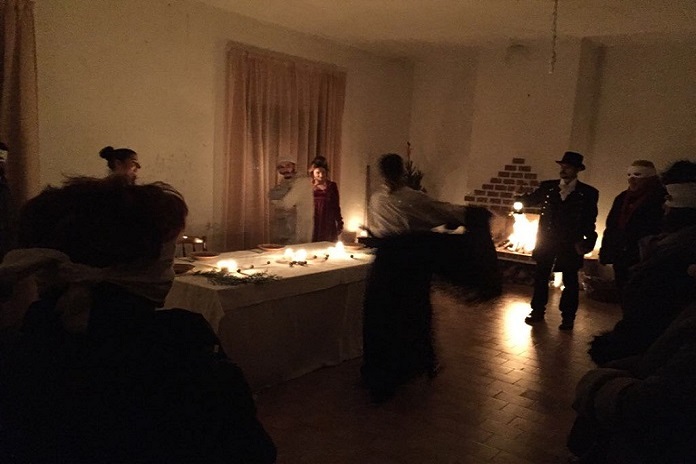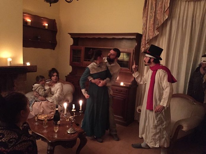 Un’esperienza del tutto nuova con un cast di oltre 20 attori ed un set di 13 ambienti, allestito all’interno di un casale inizialmente buio e freddo come il cuore del protagonista, poi sempre più illuminato e caldo mano a mano che lui stesso si trasforma. Il pubblico è itinerante così come la scena e gli attori, si spostano tutti di stanza in stanza e seguono rapiti le vicende di Scrooge. A volte lo sfiorano e sono proprio nel vivo della scena, anzi, ne fanno parte, vengono totalmente immersi nella trama e gli spiriti del Natale passato, presente e futuro spaventano Scrooge quanto gli spettatori.
