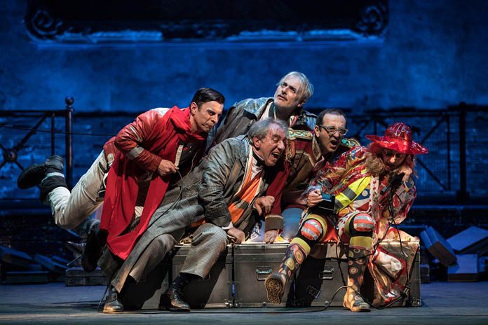 Anche in questo spettacolo si conferma l’attenzione dell’Autore per la lingua: assistiamo qui a un vero e proprio sdoppiamento – pure questo, com’è ovvio, al di là della comicità un po’ scontata, espressione del contraddittorio e dell’ambiguo che caratterizza l’epoca nostra – tra il linguaggio basso, pratico, materiale, corporeo di Salvo e quello aereo, visionario, spirituale, poetico di Cervante, insieme ad un esasperata contaminazione in veneziano e siciliano, napoletano e italiano, oltre che da parti interamente recitate in spagnolo, inglese, francese, creando una particolarissima organizzazione della macchina teatrale, che raggiunge il suo acme con l’arrivo di nuovi personaggi, portati da vagoni erranti che si muovono senza locomotive, sospinti dal vento. Prima una coppia di ristoratori in disgrazia (Ciro Damiano e Gea Martire), poi un Duca decaduto (Giulio Cancelli), infine una principessa siciliana (Marina Sorrenti) appassionata di astronomia, completeranno la compagnia, impegnata in un “esperimento di rivoluzione per ritrovare ciò che gli umani hanno perduto”, per ritrovare, cioè, la bellezza del mondo. Proprio in questo, forse, il punto debole dell’intera operazione, per tanti versi lodevole, tentata da Cappuccio: da un lato il tutto si risolve inevitabilmente e banalmente in una sorta di operazione nostalgia di un favoloso passato dominato dall’etica e dalla bellezza, contrapposto al bieco contemporaneo sguaiato e farlocco; dall’altro si allenta, dopo un po’, la tensione drammatica, la bella favola gira un po’ troppo su stessa, mentre un odor di risaputo e rifritto aleggia nell’aria, verso l’immancabile conclusione che si vorrebbe ispirata e poetica. Molti gli applausi, certo, alla fine, ma, crediamo, più alla franca verve comica dei protagonisti che al testo in sé, che rimane un po’ in mezzo al guado, sospeso nel lago immaginario di cui dicevamo all’inizio, come sui libri su cui si cammina per non precipitar nel nulla.