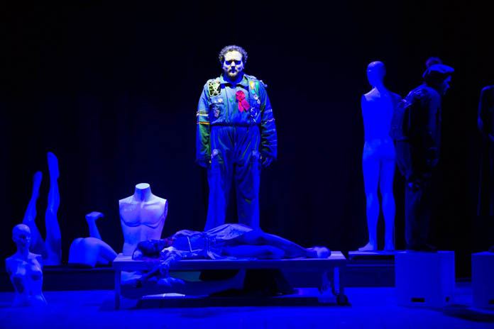 Il terrorismo, tuttavia, che pure incupì quegli anni drammatici e magnifici, è solo, sullo sfondo, un fastidioso boato di una lontana esplosione che più volte si ripete, scelta che può risultare comprensibile nell’ottica di una lettura fedele al modello dato: da quel tipo di film cui s’ispira il lavoro la cronaca (e la storia) erano ben lontane e così perfino la morte non è una cosa seria; se “Banfi non ha mai ucciso la Fenech” allora che ci si ritrovi tutti nell’al di là è del tutto normale, sarà possibile continuare a vivere come se nulla fosse successo, portandosi dietro i propri amori ma anche le proprie gelosie e invidie, in fondo Jago ha ordito la propria tela e ha causato tanti guai perché crede “in un dio crudel”, chiudendo con questa battuta (di Boito, in verità, non di Shakespeare) la rappresentazione in mezzo ai molti applausi. Forse, in verità, questo insistito spirito goliardico rappresenta la migliore qualità e insieme il peggior difetto della pièce, che, nell’ansia di piegare la vicenda del Bardo – solo ormai un accennato disegno della trama – al modello prescelto, dà fortemente l’impressione d’inesorabilmente condurre verso il trash, che caratterizzava quel cinema, pure la rappresentazione. Ottima, in ogni caso, la compagine attoriale, da Rebecca Furfaro a Giovanna Giuliani, da Luca Sangiovanni a Giampiero Schiano, allo stesso regista autore attore Luciano Saltarelli, tutti impegnati a impersonare più personaggi.