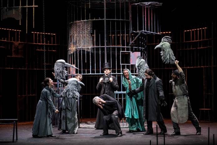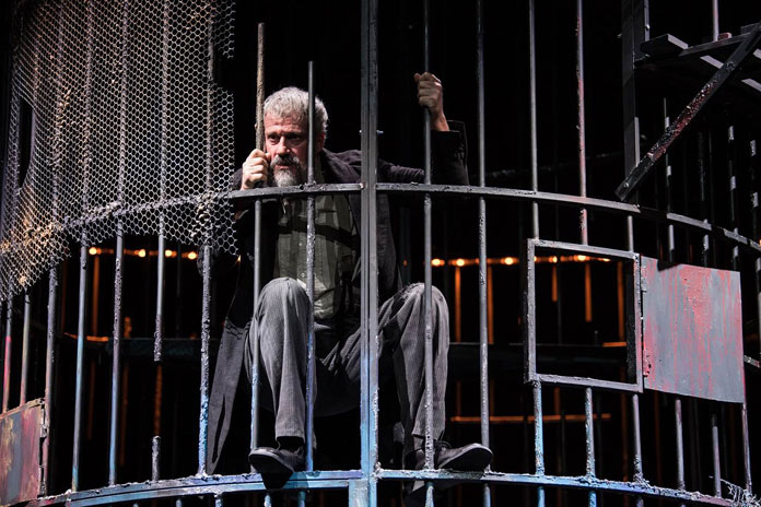 La regia volta all’esaltazione del testo porta in scena un’ambientazione cupa e soffocante che amplifica le ossessioni di Vincenzo. La scenografia è tra i punti di forza di questa produzione, una cella che da mentale diventa fisica fatta di inferriate concentriche da scalare, dietro le quali cercare protezione o dalle quali si vuole fuggire. Gemito si sente come un leone in gabbia e gli oggetti di scena rimandano alle prigionie del circo.