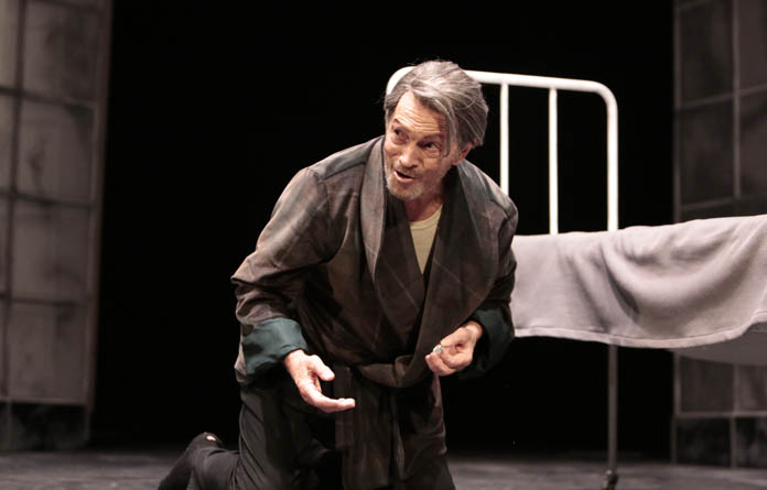 Si comprende allora, il senso dell’operazione di questa ripresa del Il giuoco delle parti al Teatro Mercadante qui a Napoli in questi giorni, fino al 18 dicembre: Umberto Orsini, che ne è il protagonista, autore, insieme a Roberto Valerio e Maurizio Balò, dell’adattamento, ha per prima cosa ben situato temporalmente la vicenda, inquadrandola in una data ben precisa, il 22 agosto 1918, nell’anno, cioè, della prima al Quirino di Roma. In tal modo gli inevitabili, numerosi e già detti riferimenti ad un mondo ormai scomparso, riescono a questo punto del tutto naturali, anche perché contrapposti ad un presente, del protagonista, di malvissuta vecchiaia, di brontolosa attesa della morte, tra infermieri, medici e sedie a rotelle, tra altissime mura da residenza sanitaria che però si rivelano ben permeabili a ricordi e stati d’animo, che traspaiono dalle pareti traslucide, traversando, grazie alla luce loro, pareti che sembrano ovatta, trattenute, e sostenute, da un traliccio che ha tutta l’apparenza, in tal modo, della gratra d’una prigione o di una carcere, come si chiama, anche qui con evidente arcaismo, nel testo. In quest’ambiente di controllata esistenza, luogo in cui vive ai limiti della cognizione, trasfigurato spazio della mente più che realtà materiale, Leone Gala vive i suoi fantasmi e le passate esperienze, come un delirio che si confonde senza soluzione di continuità con l’effettività, convivendo del tutto gli invisibili – tranne che a lui – fantasmi del passato con gli abitanti del presente: e la vivida rivisitazione di ciò che fu, in tutta evidenza, conserva intatto, pur nell’impotenza della conservata memoria remota, la forza prorompente del turbamento delle emozioni. Ha voglia di proclamare la sua verità, Leone, straparlando d’energia della ragione che svuota del suo imprevedibile e liquido e vischioso contenuto le “uova” che la vita gli scaglia contro, sì da ridurle a leggeri e inoffensivi gusci vuoti, l’ossessivo, pervadente persistere del passato non trae certo la sua forza dalla robusta ragione e dai sofistici ragionamenti, ben altro è il vorticare delle passioni che hanno lasciato il segno, ancora bruciante e urticante e lancinante la cognizione del dolore che ancora vive e sanguina. Via la serena, glaciale atarassia del Leone giovane che apparteneva al passato, l’imperturbato orizzonte che gli permetteva dormire senza sogni la notte prima dell’assassinio è solo, quello sì, un pallido ricordo, la fedele ragione diventa allucinazione, travisamento, miraggio: il nuovo Leone, il vecchio, vive nel tormento dell’inferno un presente agitato dal rimorso di non aver vissuto “le debolezze di un uomo”, dal rimpianto di non aver trovato “la tranquillità di un dio”.