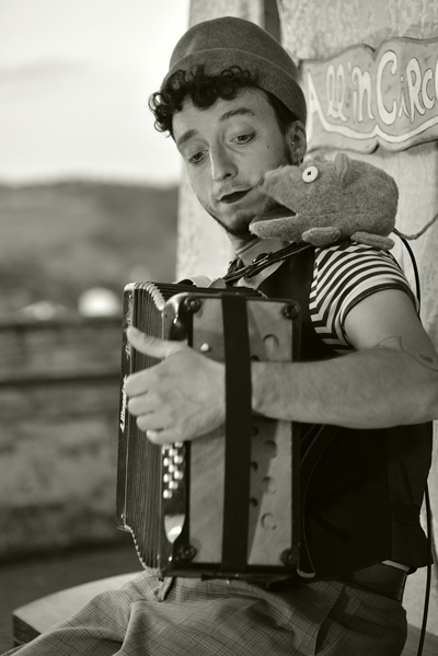 La terrazza del Belvedere Calindri offre uno splendido panorama su Certaldo e la rigogliosa campagna circostante, ed è qui, con una tale vista, che attendiamo il secondo spettacolo in programma, C’era due volte un piede di Veronica Gonzalez. L’effervescente artista sale sul palco, su musiche ritmate e coinvolgenti, ed aprendo valigie colorate, dà il via libera alla magia della trasformazione: i suoi piedi si trasfigurano assumendo le più disparate sembianze, da Arlecchino e Colombina a un torero col suo toro, da un ladro inseguito dal poliziotto fino ad un’ammaliante sirena ed il suo fuggitivo marinaio. La velocità della trasformazione è unica, il ritmo sempre sostenuto sembra dar vita a veri e propri Muppet in carne ed ossa per gag comiche ed esilaranti.
