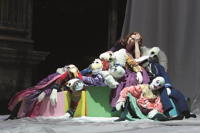 E di questo fantastico tessuto, fatto della stessa stoffa dei sogni, alcune immagini le porteremo per sempre dentro di noi, per l’inaudita forza visionaria che posseggono: così l’incantesimo della luna, così l’apparizione di Maddalena (Beatrice Ceccherini), rossa eruzione della forza procace e incrollabile della vita, così l’improvvisa evocazione delle Donne durante la rappresentazione de La favola del figlio cambiato, così il gruppo dei Fantocci, in cui la perfezione del gesto mimico evoca e allude ad una surrealtà che trova altrove le sue radici, fino alla saggia scelta di Lavia di chiudere la rappresentazione nel punto esatto dove Pirandello l’ha lasciata, tralasciando l’epilogo raccontato dal figlio del poeta, raccolto in punto di morte. La cavalcata dei Giganti, che non vediamo, ma di cui udiamo, fortissimo, l’ansioso energico galoppo intorno a noi, evoca estreme possibilità, lascia libera la nostra fantasia, chiude la rappresentazione e la vita del Poeta nel modo da lui stesso immaginato e descritto, nel frammento di cui prima si diceva: “Appena liberato d’ogni illusione dei sensi, sarò come quell’inavvertibile spruzzo improvviso in cui s’estingue una bolla di sapone. Luce e colori, movimento; tutto sarà come nulla. E silenzio”.