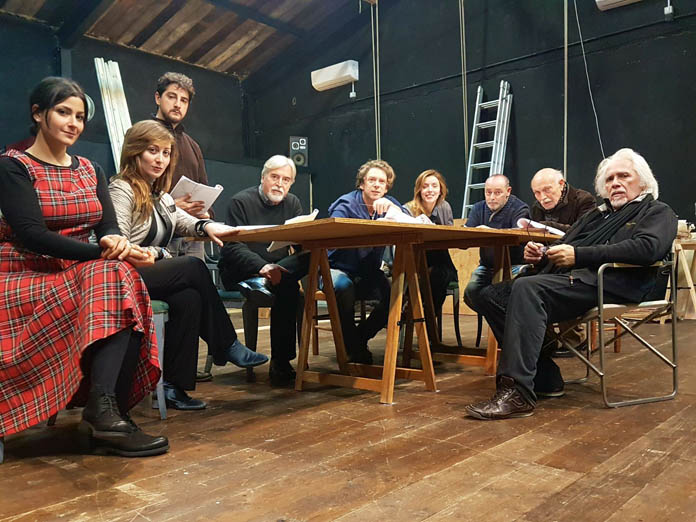Così, l’attempato Maestro, critica feroce di certo Regista Impegnato, chiede agli attori di provare in maschera – portano in effetti tutti, all’inizio, sul volto una maschera che lascia scoperta solo la bocca – che poi, assicura, sarà tolta il giorno della prima, a testimonianza del percorso che dovranno fare da maschere ad attori consapevoli (finirà che prima uno, poi un altro, alla fine tutti toglieranno la maschera); opera tagli a piacimento sul testo, inserendo invece nuove espressioni e parole – ovviamente il turpiloquio – che gli sembrano più adatte a destare interesse nella contemporaneità; straparla dell’ingombrante Autore proclamando di voler arrivare alla “carne” superando i “teoremi”, ma poi, attempato e con tutti i problemi dell’età sua, manda a prendere in camerino un “integratore” che “lo tiri un po’ su”. E, certo, fare dell’umorismo sul maestro dell’umorismo è (potrebbe essere, sarà, avrebbe potuto essere) il massimo dell’umorismo.