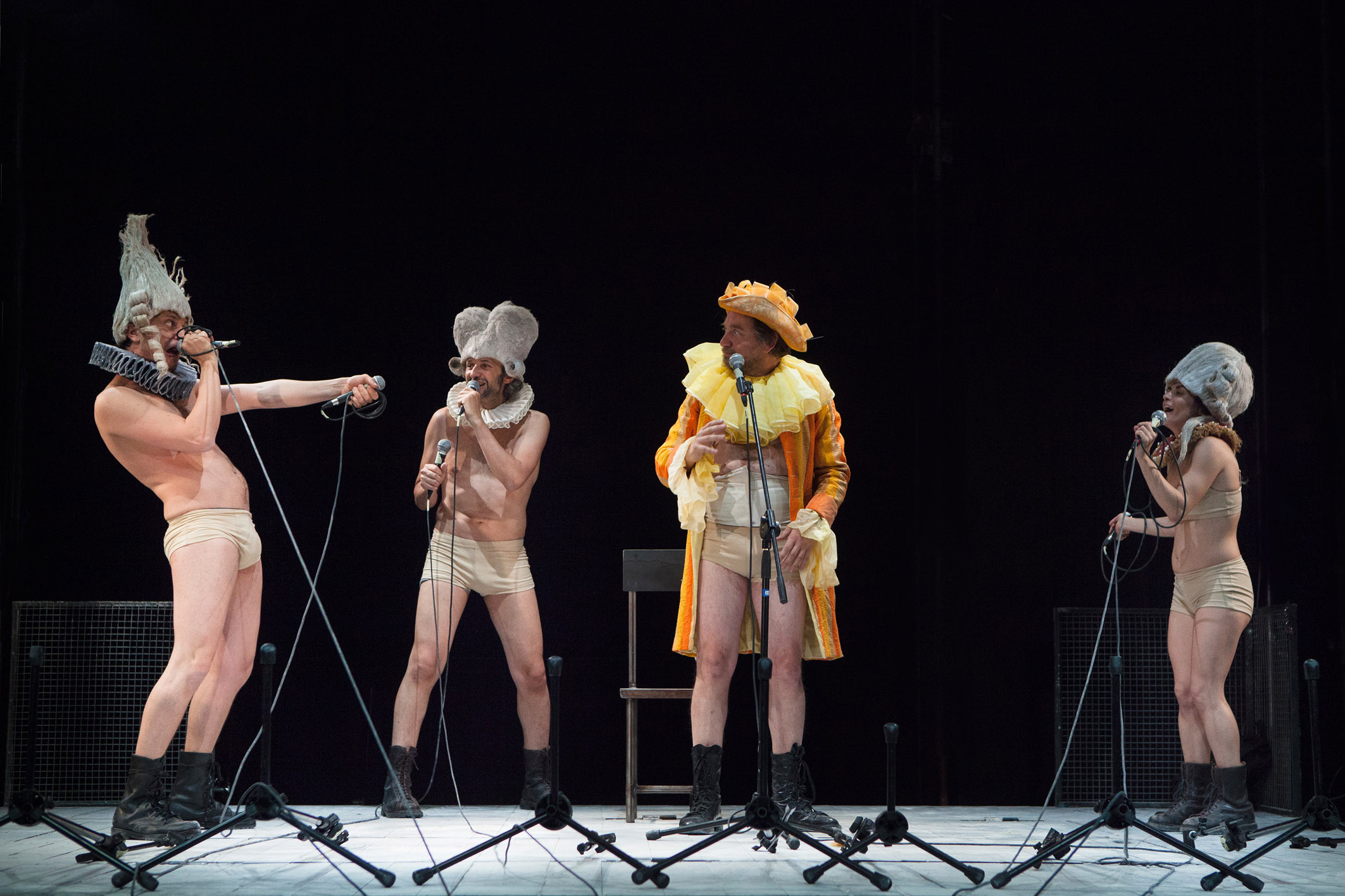 A questa macchina teatrale già intrinsecamente complessa, il regista aggiunge un ulteriore espediente narrativo ovvero il metateatro e l’abbattimento in alcuni frangenti della cosiddetta “quarta parte”, che divide il palco dal pubblico; così in più momenti la narrazione si interrompe e gli attori iniziano a consultarsi tra loro sul testo che andranno a leggere e sui ruoli da interpretare. Questo strumento recitativo però è un’arma a doppio taglio che va maneggiata con cura: se da una parte lo spettatore si sente chiamato a salire sul palco e a prendere parte a quanto sta accadendo sulla scena, dall’altra è difficile riuscire a farlo scendere senza creare fratture e spaesamenti, tornando a quello che si stava raccontando prima. Nello spettacolo di Carbone, purtroppo, questo espediente non funziona e, anzi, non fa altro che rendere ancora più difficile la comprensione di quello a cui si sta assistendo.
