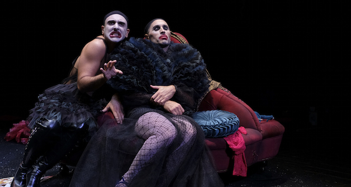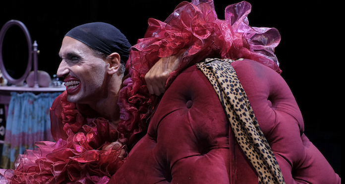 Anche perché c’è Anna. Anna, interpretata con pari maestria da Sergio Del Prete, è un altro travestito che abita vicino che, secondo copione, irrompe sulla scena intorno alla metà della pièce, anch’essa infastidita e preoccupata dalle interferenze telefoniche, perché in attesa d’una importante telefonata. Personaggio oscuro e fortemente ambiguo, umbratile e taciturno in contrapposizione e contrasto alla luminosa e colorata Jennifer, Anna è presente, per scelta registica, fin dall’inizio sulla scena, si aggira silenzioso, inquietante, circospetto, suggerendo con chiarezza, come sempre avviene nel teatro di Ruccello, una commistione tra io e altro, tra dentro e fuori, tra sogno e realtà; così, le fragili barriere che proteggono il nostro io possono liquefarsi improvvisamente, compiersi irreparabile l’irruzione del fuori, l’angoscia diventare insormontabile.