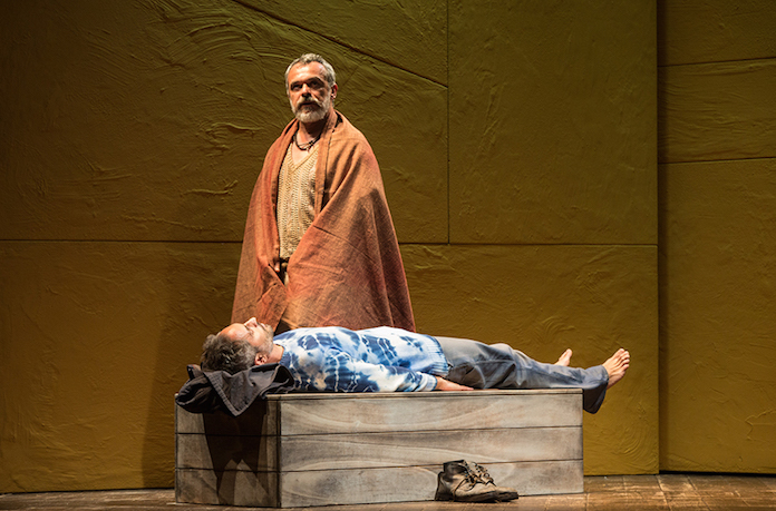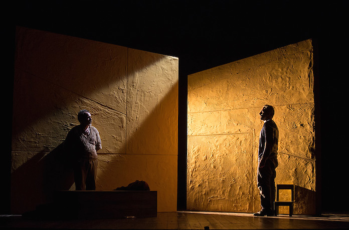È un tempo stringato in cui non succede, in apparenza, nulla, se non nelle coscienze, un tempo che si dilata, tuttavia, a dismisura, nel silenzio degli sguardi di chi siede in platea, nel serrato dialogare dei due, un tempo che, in modo proporzionalmente inverso all’ansia claustrofobica e asfittica che le alte mura che circondano i protagonisti potrebbero generare, lentamente si apre a un barlume, sia pur flebile, di speranza e di vita vera e autentica. Peppino Mazzotta cura una regia volutamente non invadente, che risolve con discrezione certe apparenti contraddizioni di un testo che vive e si regge sulla dialettica e sulla problematicità più che sulla perfetta coerenza, stemperando alcune possibili fragilità, sublimandole invece in punti di forza, dirigendo, alla fine, quel che potremmo chiamare, sul modello d’una antica composizione così cara alla musica barocca, un Oratorio per due voci sole, possedendone, in fondo, lo stesso rigore formale, lo stesso afflato mistico e profondo.