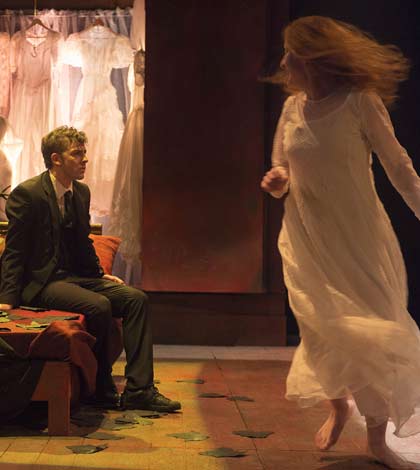 La sua Euridice ha un ruolo molto attivo e vitale. Seppur presentata già morta fin dall’inizio dello spettacolo, è il personaggio più fisico e concreto tra i due, traboccante di vita nella luminosa veste bianca da ninfa. È lei stessa ad invitare Orfeo a girarsi per accettare e superare il lutto, per riconoscere le cose per quello che sono e tornare a vivere e ad amare. Così Euridice è motivo di dolore ma anche di rinascita, di una nuova consapevolezza di sé e del mondo per Orfeo che viene incoraggiato ad innamorarsi della vita tutta, nelle sue infinite manifestazioni.